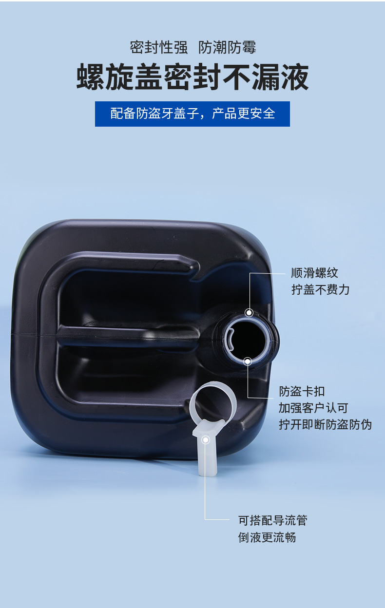 采用全新聚乙烯原料吹塑工藝制作而成,具有耐腐蝕,耐酸堿性,小口設(shè)計(jì)密封性能強(qiáng),廣泛應(yīng)用于化工清潔劑,表面處理劑、輔料添加劑、飼料添加劑, 樹脂農(nóng)藥,日用化學(xué)品,聚氨酯、膠黏劑 消泡劑 電解液等各行業(yè)液體包裝。