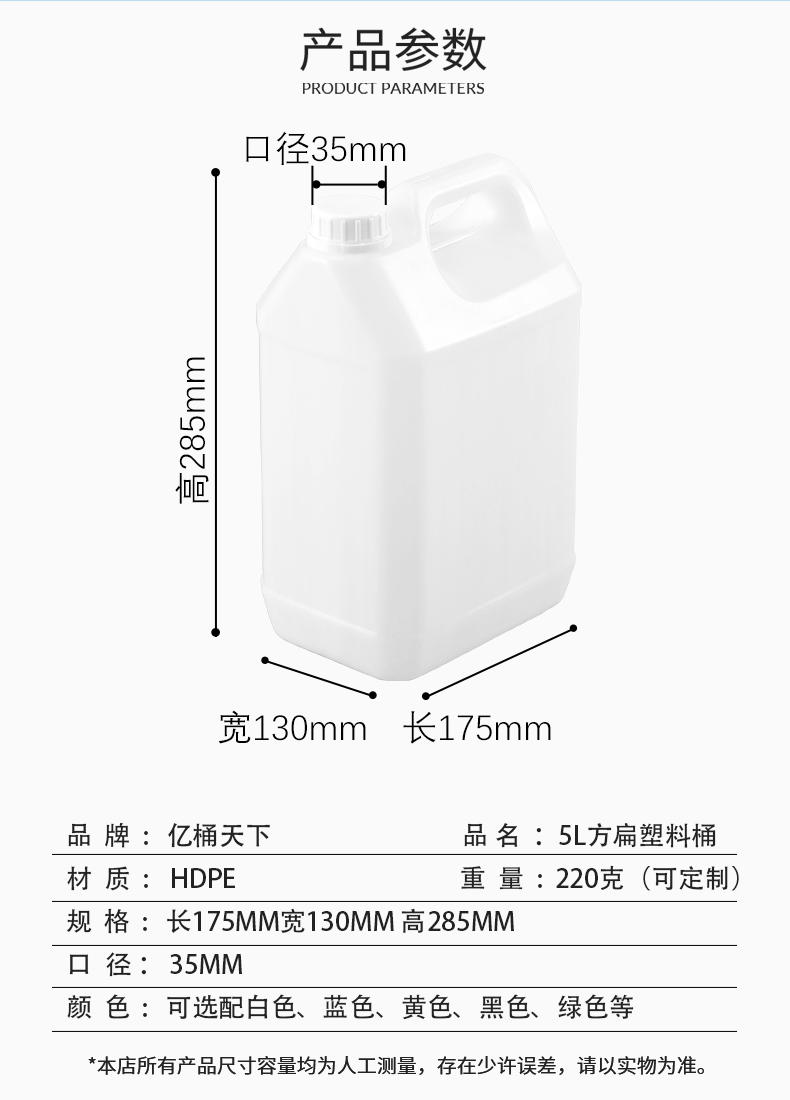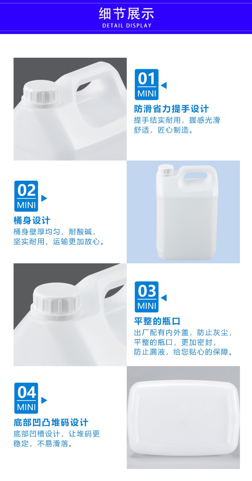 采用全新聚乙烯原料吹塑工藝制作而成,具有耐腐蝕,耐酸堿性,小口設(shè)計密封性能強(qiáng),廣泛應(yīng)用于化工清潔劑,表面處理劑、輔料添加劑、飼料添加劑, 樹脂農(nóng)藥,日用化學(xué)品,聚氨酯、膠黏劑 消泡劑 電解液等各行業(yè)液體包裝。